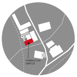 Les locaux de Formation Emploi se trouvent à Porrentruy dans le bâtiment de l’Ecole professionnelle commerciale en haut de la vieille ville, vers le Lycée cantonal et le Centre sportif des Tilleuls. Nous avons également une antenne décentrée à la zone industrielle des Grandes-Vies derrière la gare. Juste avant l’école, vous trouvez l’Esplanade des Tilleuls (place en graviers) et en suivant sur 50 m la rue derrière l’école, vous avez un parking en face du terrain de football. Des places de parc sont à disposition devant le bâtiment des Grandes-Vies.